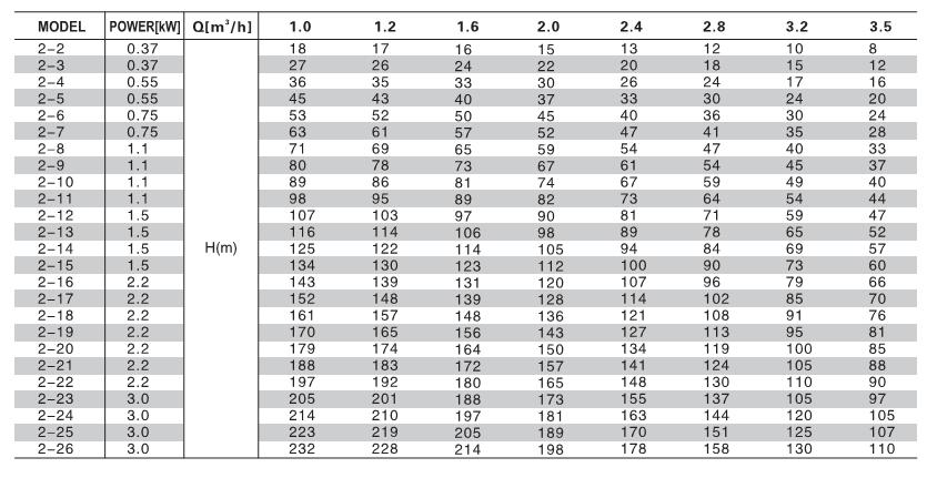 | MODEL | PHASE | HP | KW | H(m) | M3 /h |